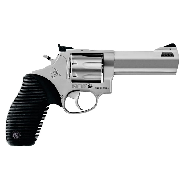 O REVÓLVER TAURUS 627 possui capacidade de 7 tiros, calibre 17num, cano de 4", vértice de mira ajustável e compensador de recuo.