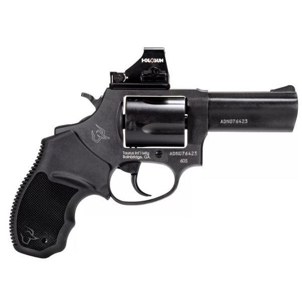 O REVÓLVER TAURUS 605 possui capacidade de 6 tiros, calibre .357Mag e cano de 3 Polegadas, mira fixa.
